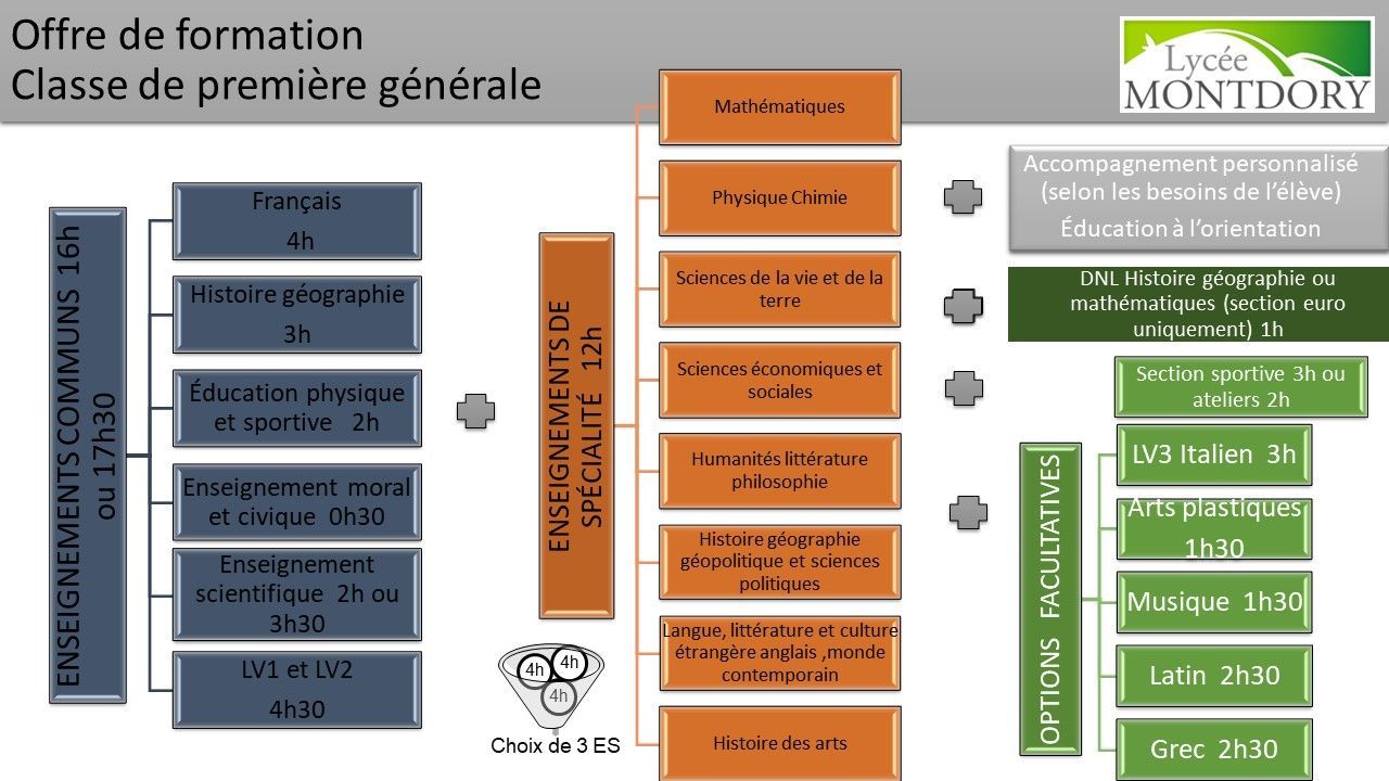 La classe de première propose un tronc commun de 16h, dont les enseignements sont identiques pour tous les élèves.